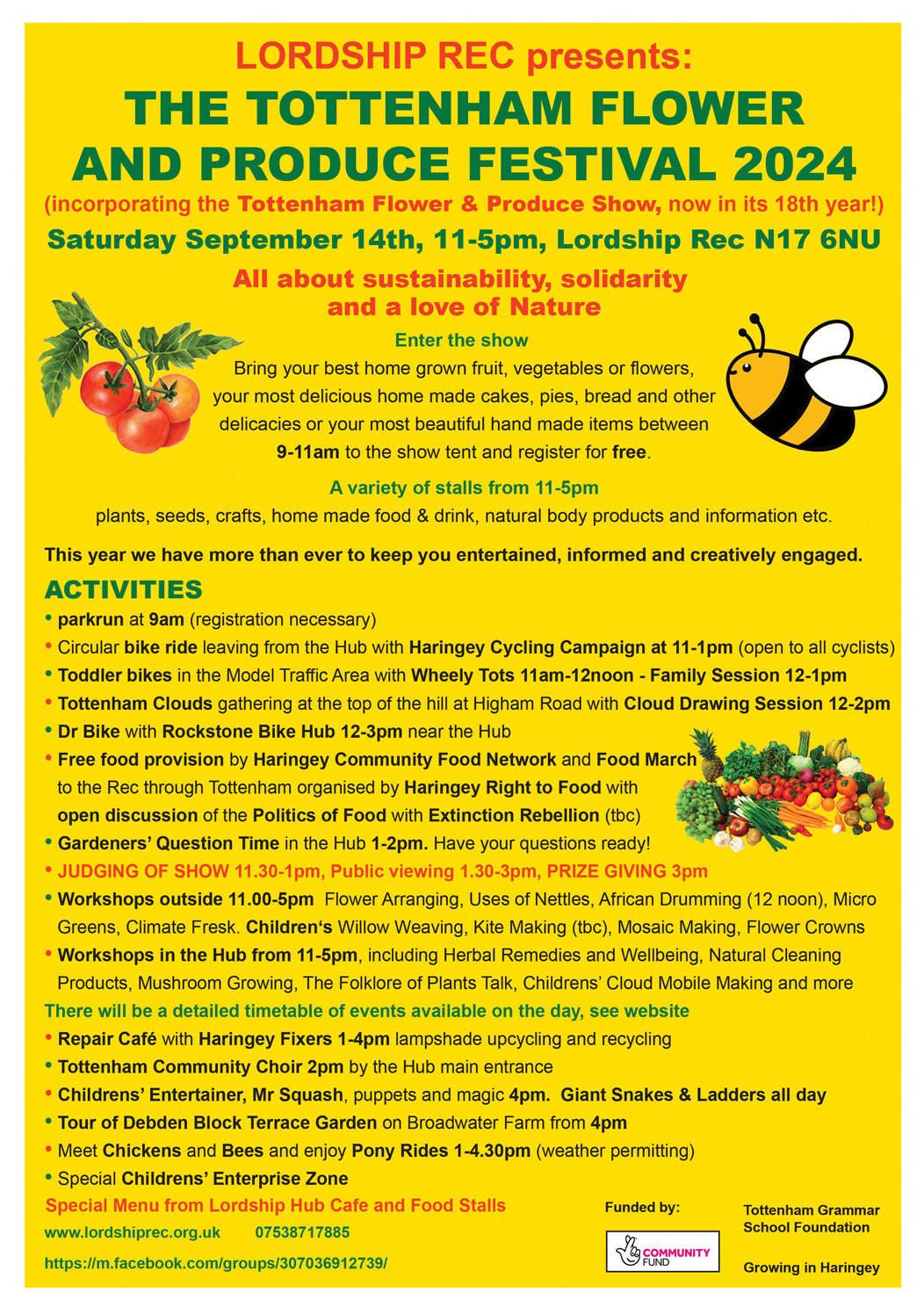Sat Sept 14: Tottenham Flower & Produce Festival