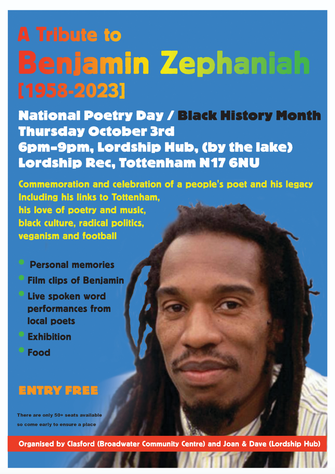 A commemoration and celebration of the life and work of Benjamin Zephaniah, the great ‘people’s Poet’